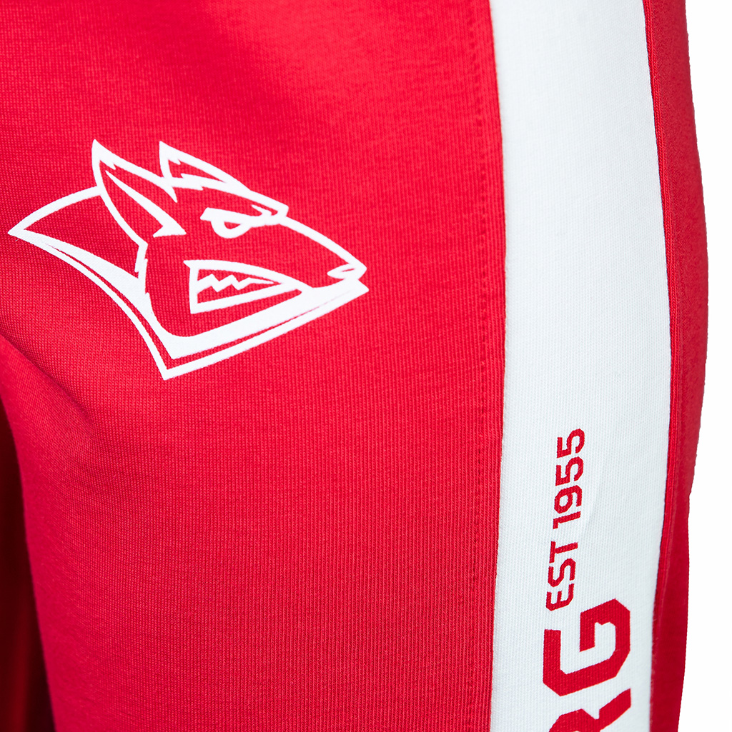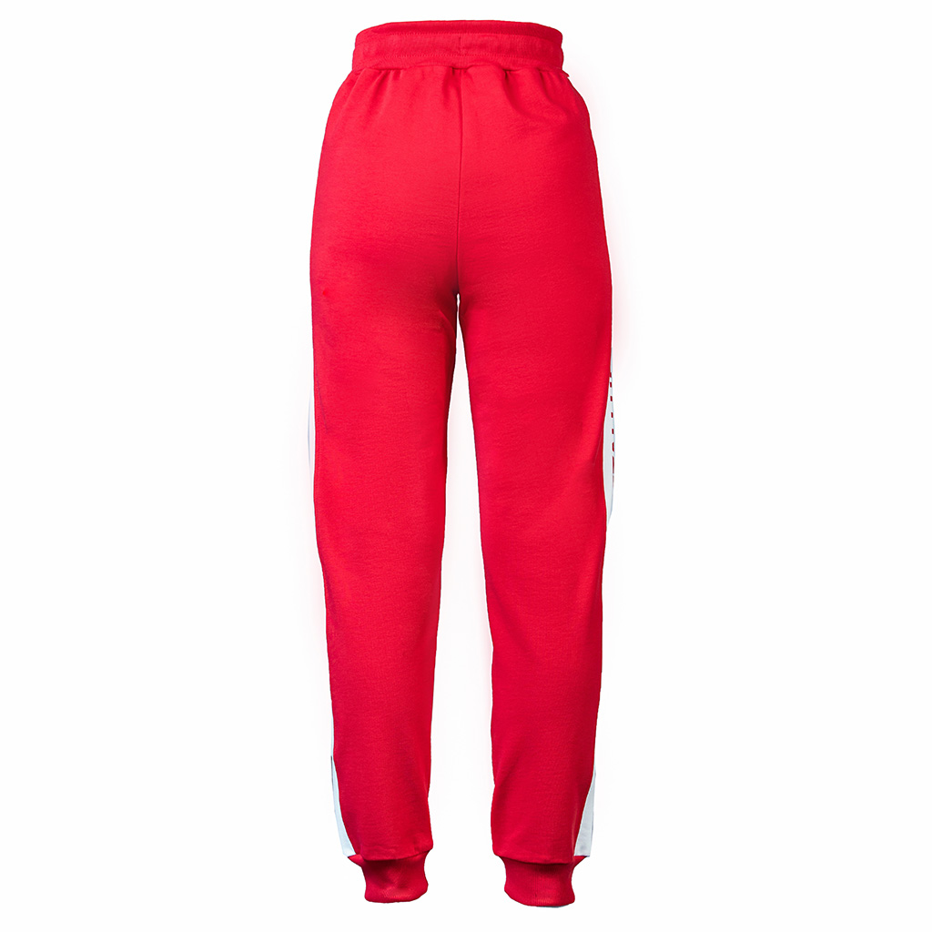 Спортивные штаны с символикой клуба. Детали: прямой крой, манжеты на резинке, шнурок на бедрах. Состав: 100% хлопок. Элементы: принт. Цвет: красный.