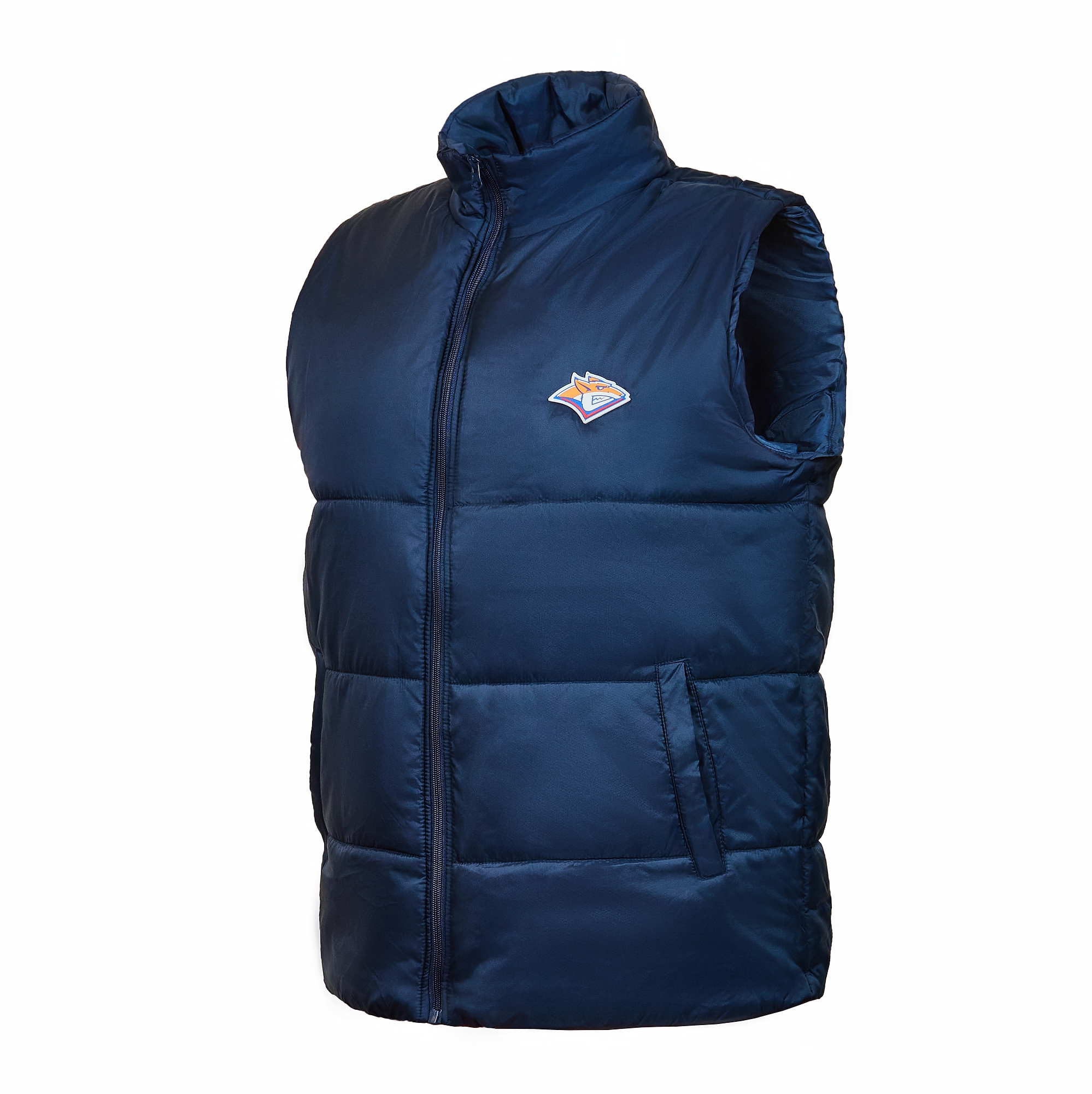 Универсальный жилет прямого силуэта с широкой горизонтальной стежкой, высоким воротником-стойкой, глубоким прорезным карманом и застежкой на молнию. Детали: логотип - ПВХ шеврон. Материал верха Taffeta 210T – прочный и шелковистый нейлон, обработанный водоотталкивающей пропиткой. Подклад выполнен из 100% полиэстера, благодаря чему изделие обладает высокой износостойкостью. Наполнитель из 100% полиэфира надежно удерживает воздух, поддерживая комфортный микроклимат внутри изделия.