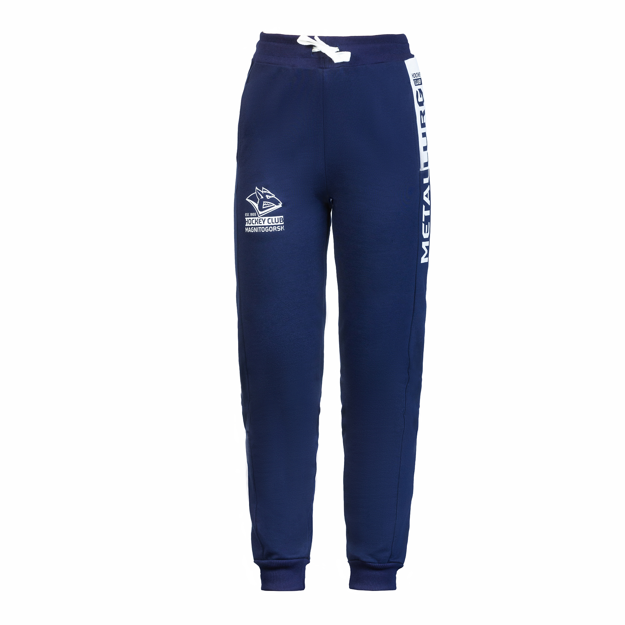 Спортивные штаны с символикой клуба. Детали: прямой крой, манжеты на резинке, шнурок для регулировки, карманы. Состав: 65% хлопок, 35% полиэстер . Элементы: принт на левой лампасе сверху и на передней правой половине изделия на уровне кармана.