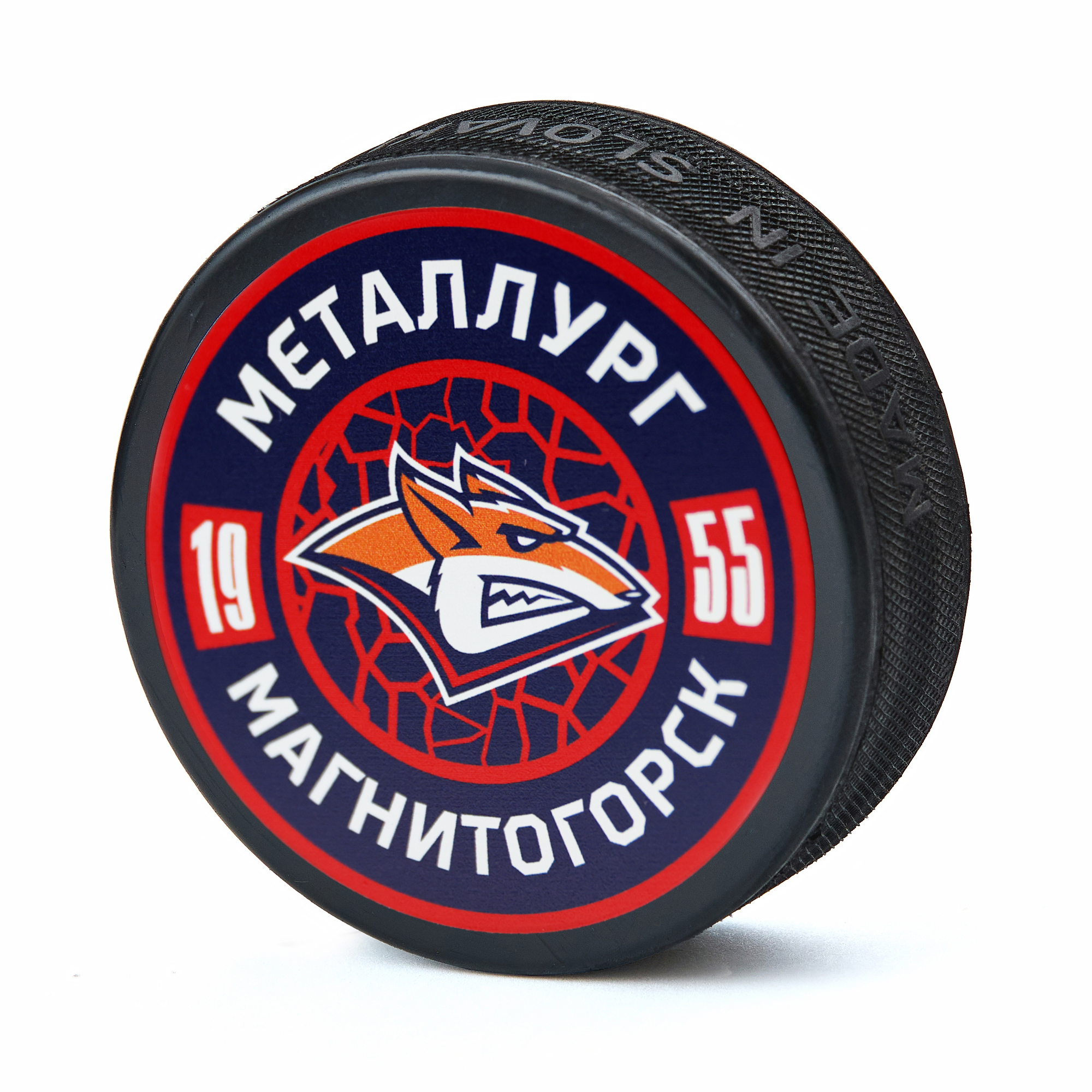 Сувенирная шайба с изображением логотипа хоккейного клуба «Металлург». Блистерная упаковка. Материал: 100% резина.