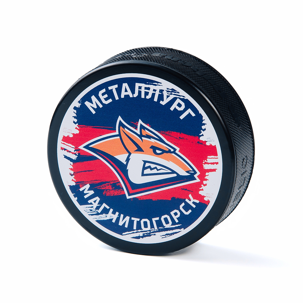 Сувенирная шайба с изображением логотипа хоккейного клуба «Металлург». Блистерная упаковка. Материал: 100% резина.