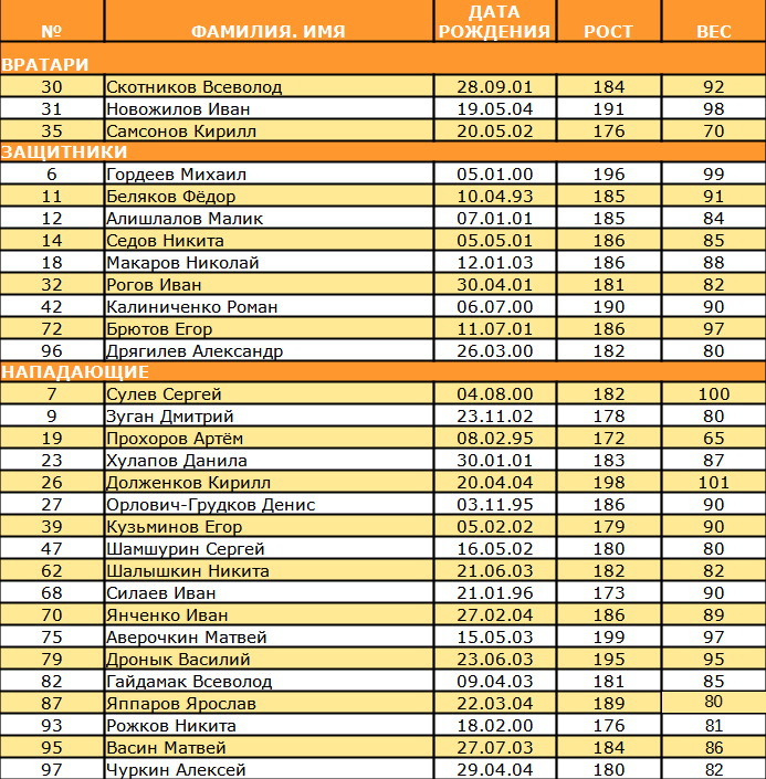 Состав команды: